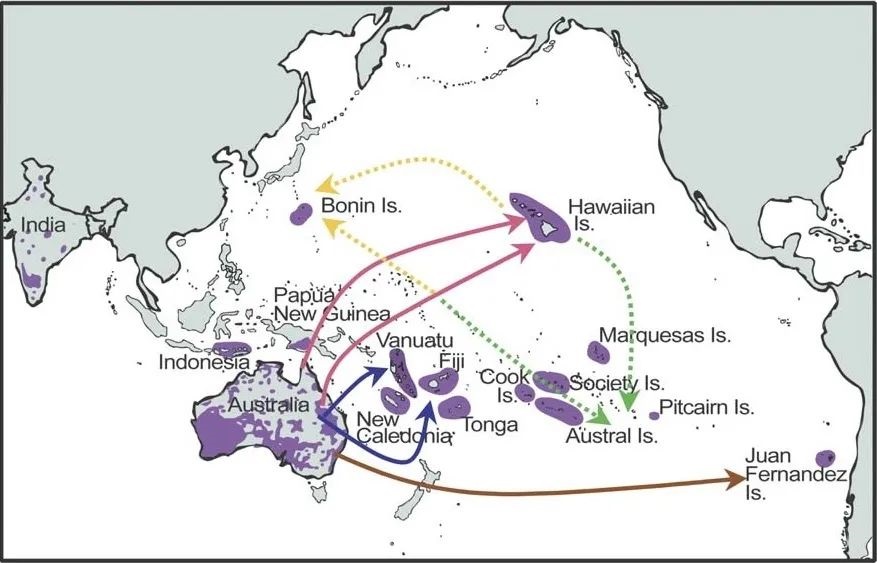 檀香種類的分布與傳播(引自美國植物學(xué)報)